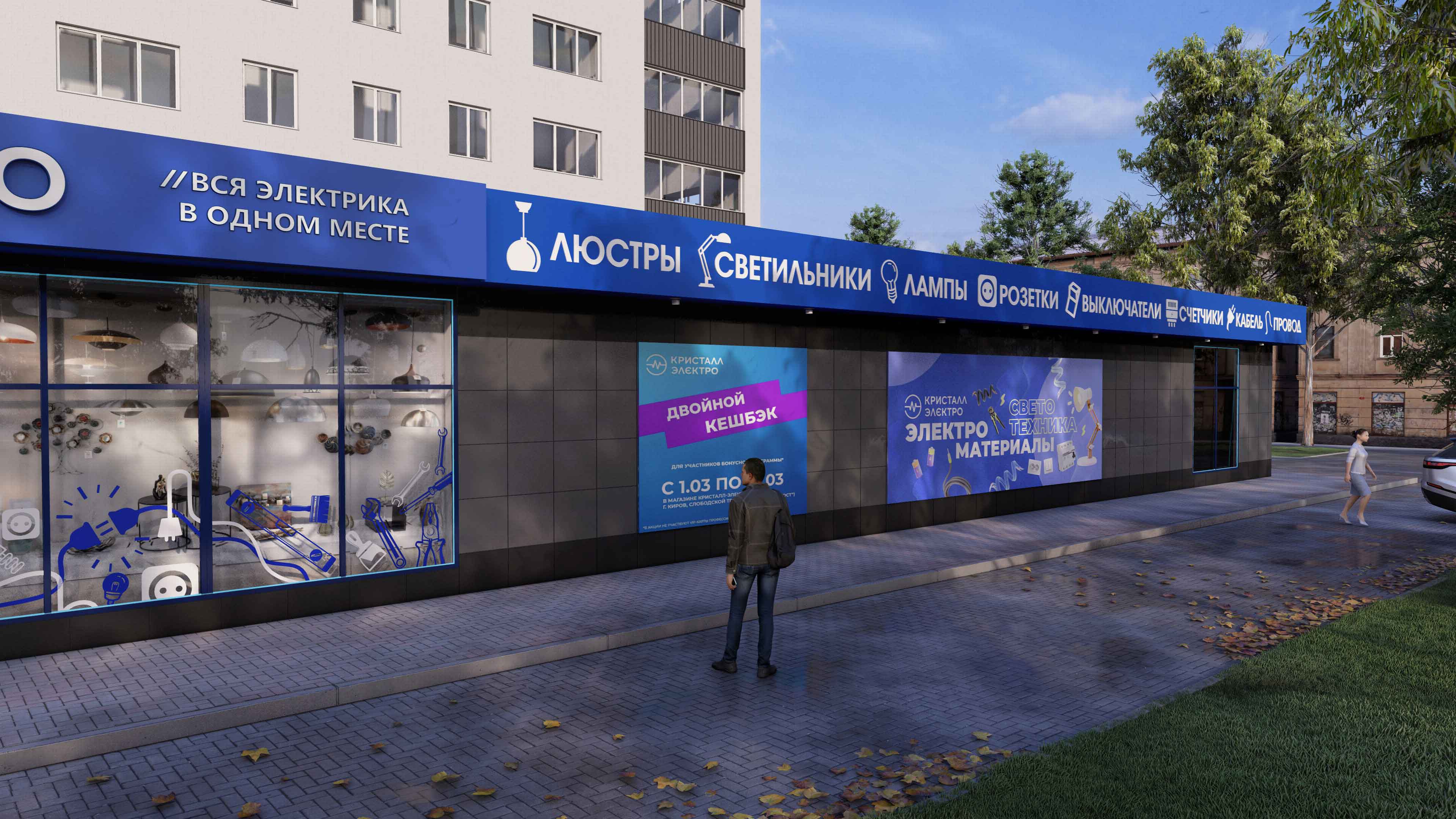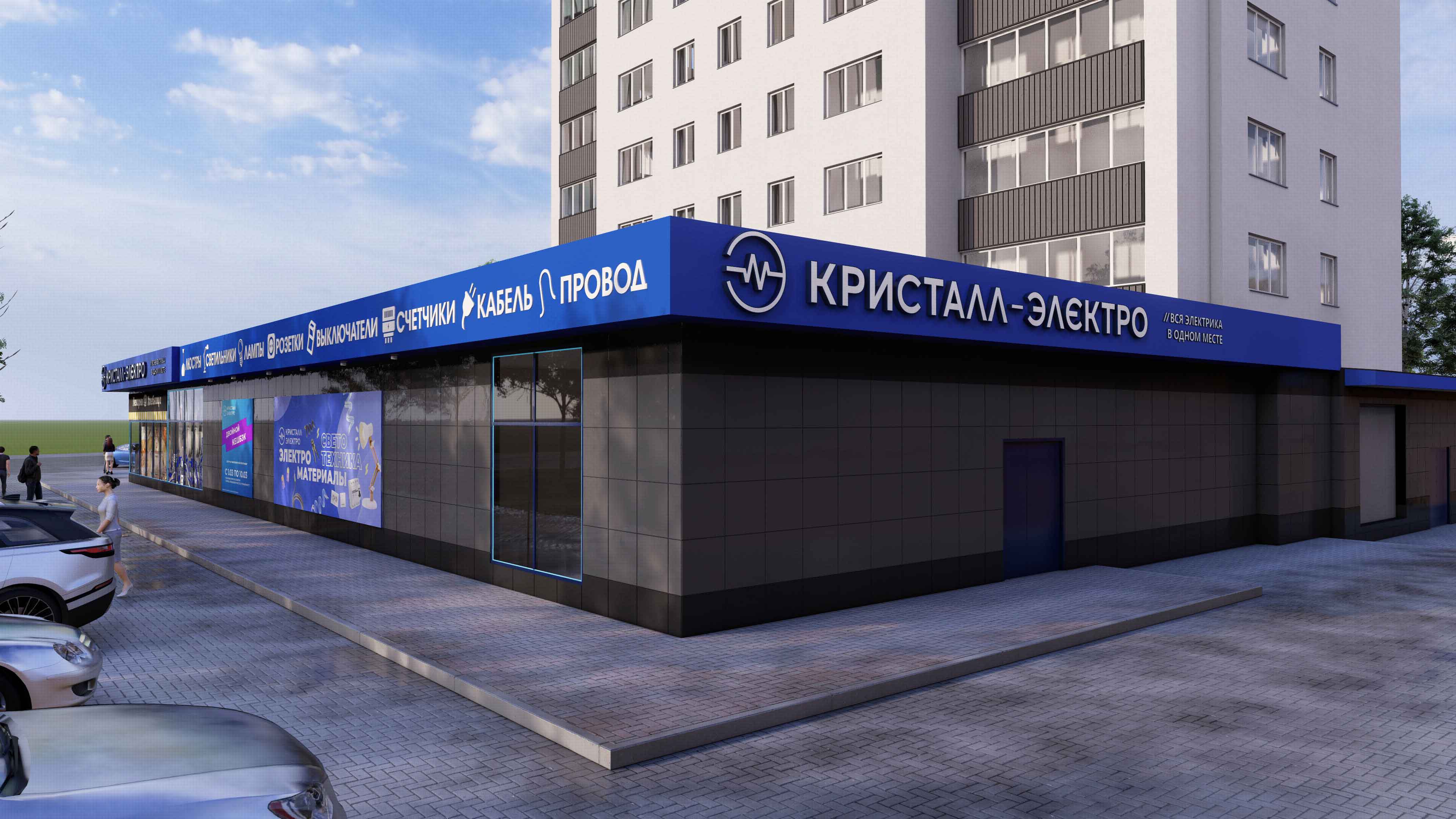 Дизайн проект фасада магазина электротехники "Кристалл-электро" г. Киров.