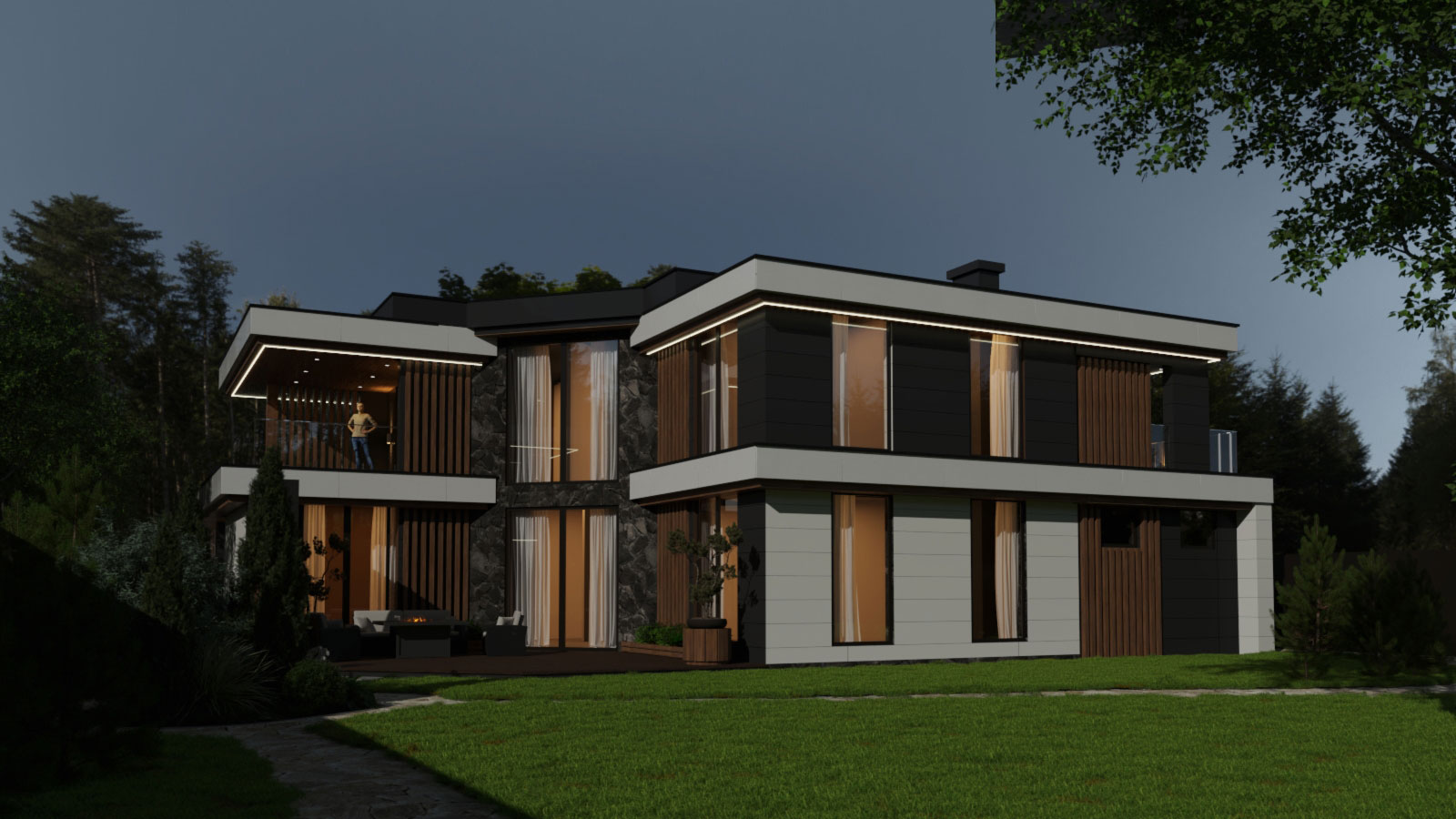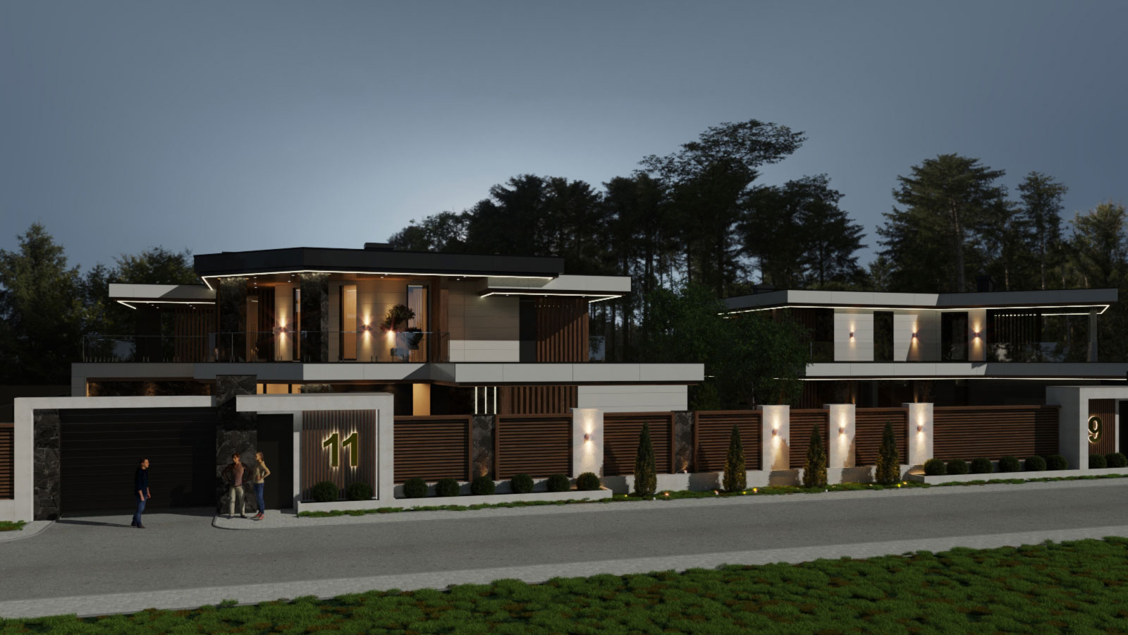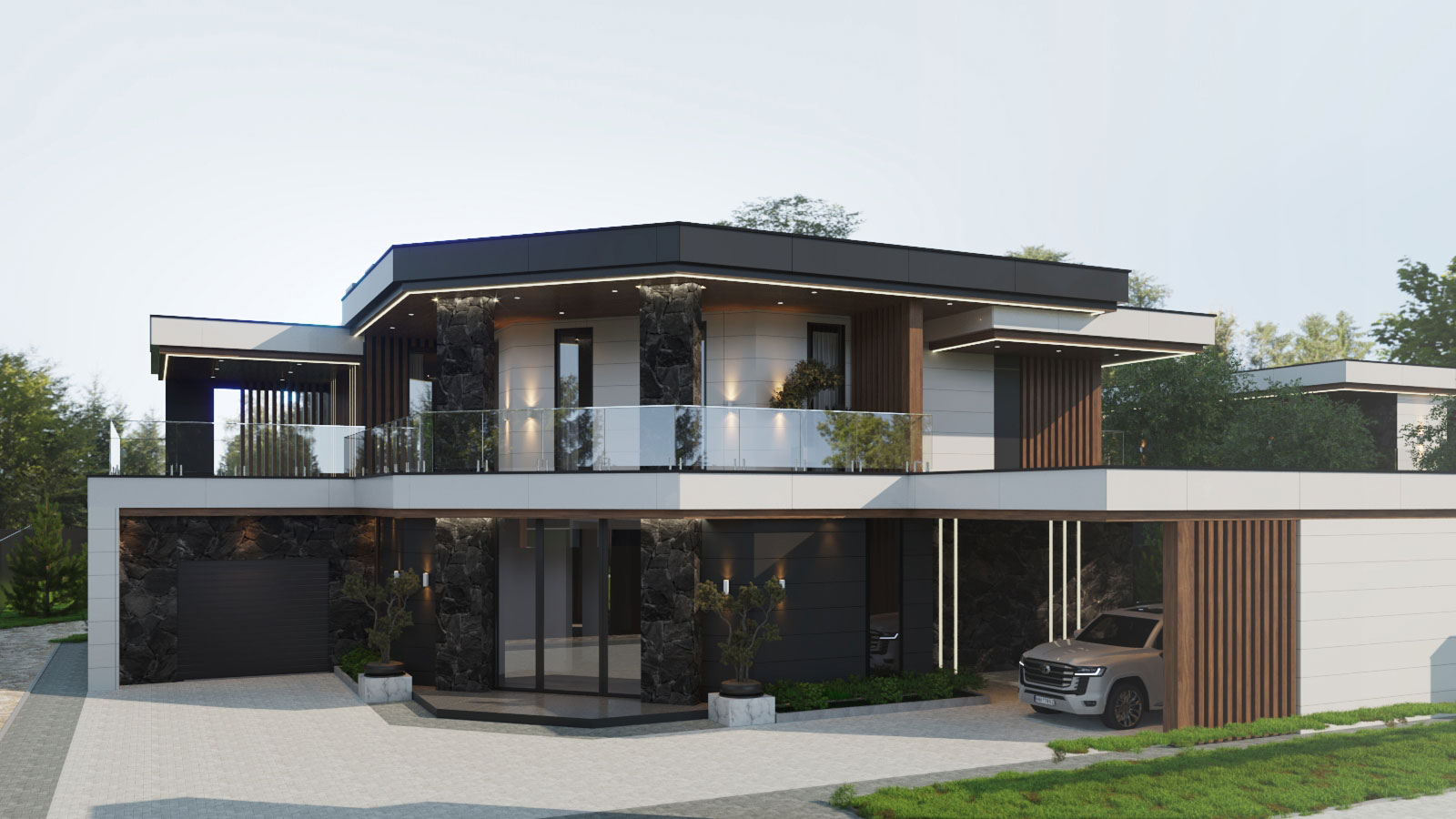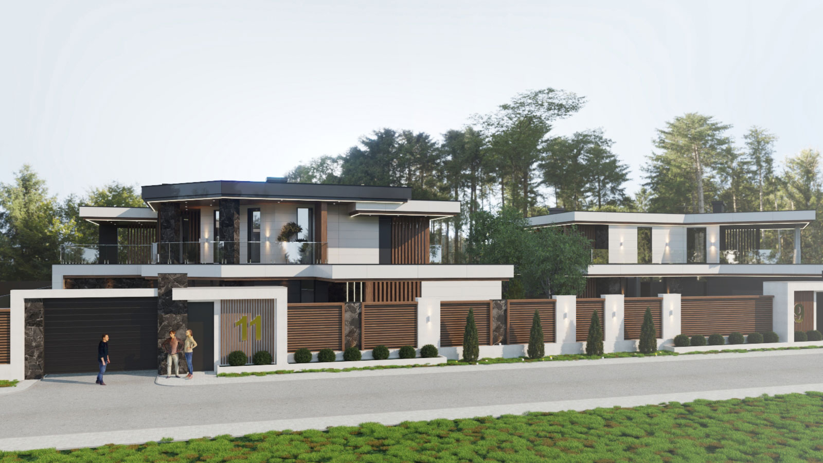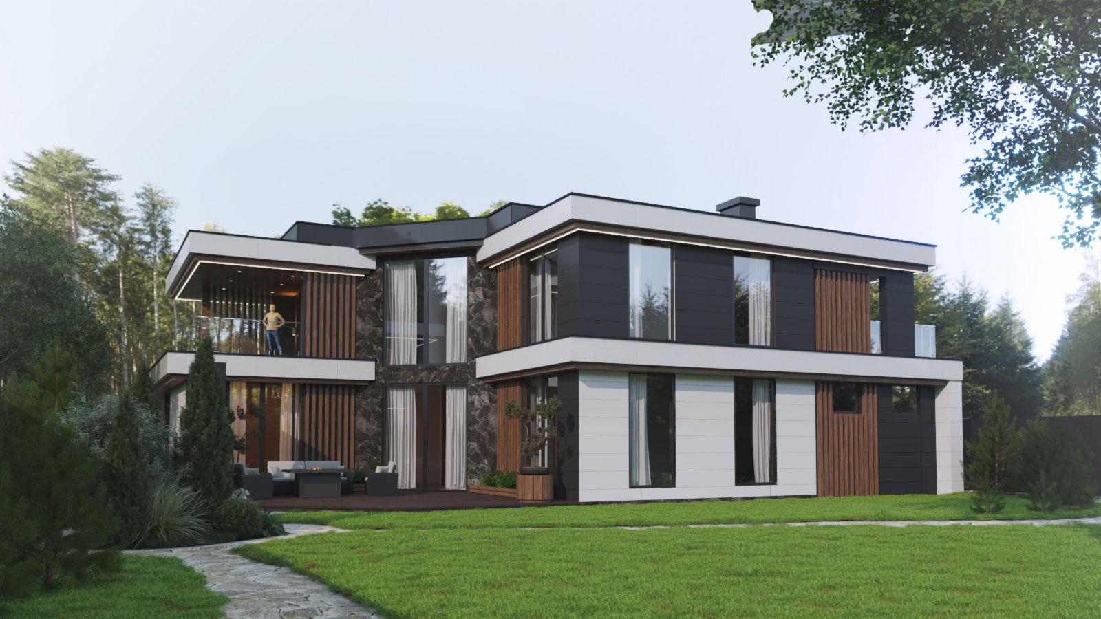Архитектурный проект загородного дома 250 кв.м. в коттеджном поселке. Для клинта выполнена разработка 3 типов современных двухэтажных домов в единой стилистике, с индивидуальными архитектурными особенностями и планировкой, которую по желанию конечного клиента можно изменить.